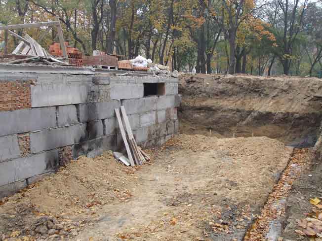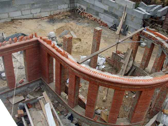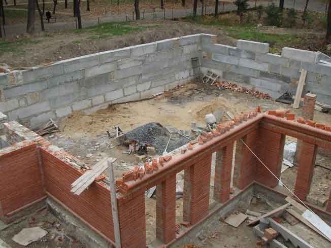 Вид на центральную часть строящегося первого этажа и на квадратную башню.